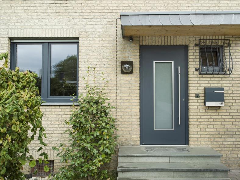 Haustür mit quadratischen Milchglas Ausschnitten in Kaarst